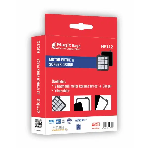 Magic Bags kalitesiyle sunulan bu orijinal motor filtre seti, Arnica Pika ve Mila serisi süpürgeleriniz için özel olarak üretilmiştir. Süpürgenizin motorunu toz ve partiküllere karşı koruyarak ömrünü uzatır ve emiş performansını maksimum seviyede tutar. Orijinal üretici kodu 5646587 ile tam uyumludur!