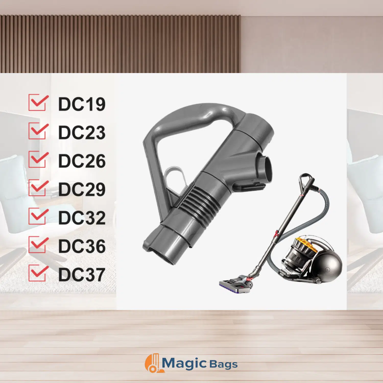 Magic Bags kalitesiyle sunulan bu tabanca tipi tutma sapı, Dyson modelleri için 917276-01, 917276-05, 917276-06, 923081-01 ve 92308101 numaralı orijinal parçaların yerine kullanılabilir.Not: DC19 modelleri ile uyumlu değildir, sadece DC19T2 modeli ile uyumludur.Mükemmel kalite ve uyum sağlayan bu tutma sapı, elinizde rahatça oturarak temizliği zahmetsiz hale getirir. Hassas işçilik ve konforlu tasarımı ile ideal temizlik arkadaşınız olur.