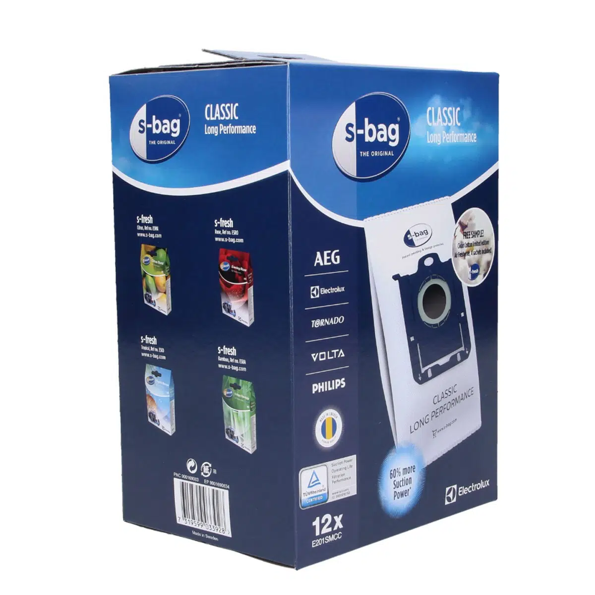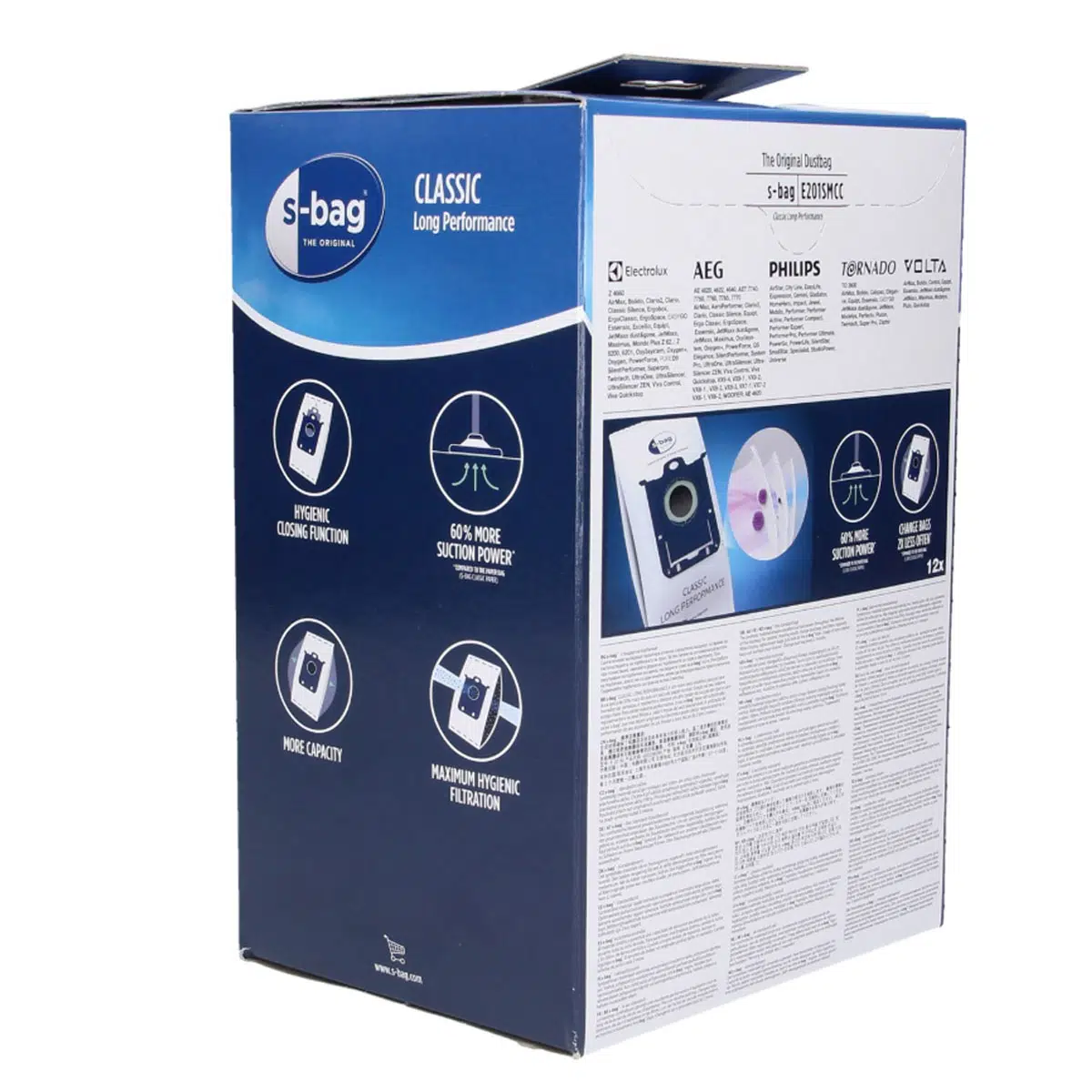 Philips, Electrolux, AEG, Volta ve Tornado marka torbalı süpürgeleriniz için özel üretilmiş orijinal S-Bag® Classic toz torbaları, %99 filtreleme performansı ve sıradan torbalara kıyasla %50 daha uzun kullanım ömrü sunar. TÜV sertifikalı bu torbalar, toz ve alerjenleri hapsederken süpürgenizin emiş gücünü korur. 12'li mega paket ile uzun süreli kullanım ve ekonomik çözüm!